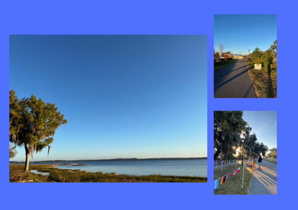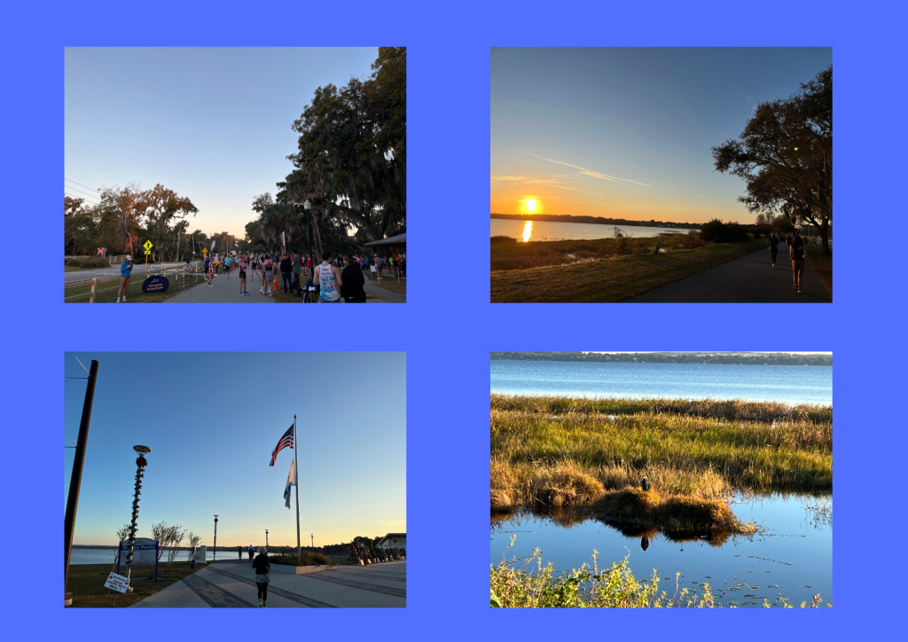 The sunrise was around 7:20 so as I got to the lake I was treated to the sun coming up- the sky was so orange just before although it wasn’t captured that well in the photos. I was wondering if I’d need a jacket at first (Florida was having a cold front just before we arrived and on NYD there was a thin frost on the car first thing, although it would warm up once the sun was out), but I was fine in t-shirt and shorts even before I started running. It was funny seeing the locals wrapped up in thick joggers and hoodies (with hoods up!) when I was just there in minimal layers!