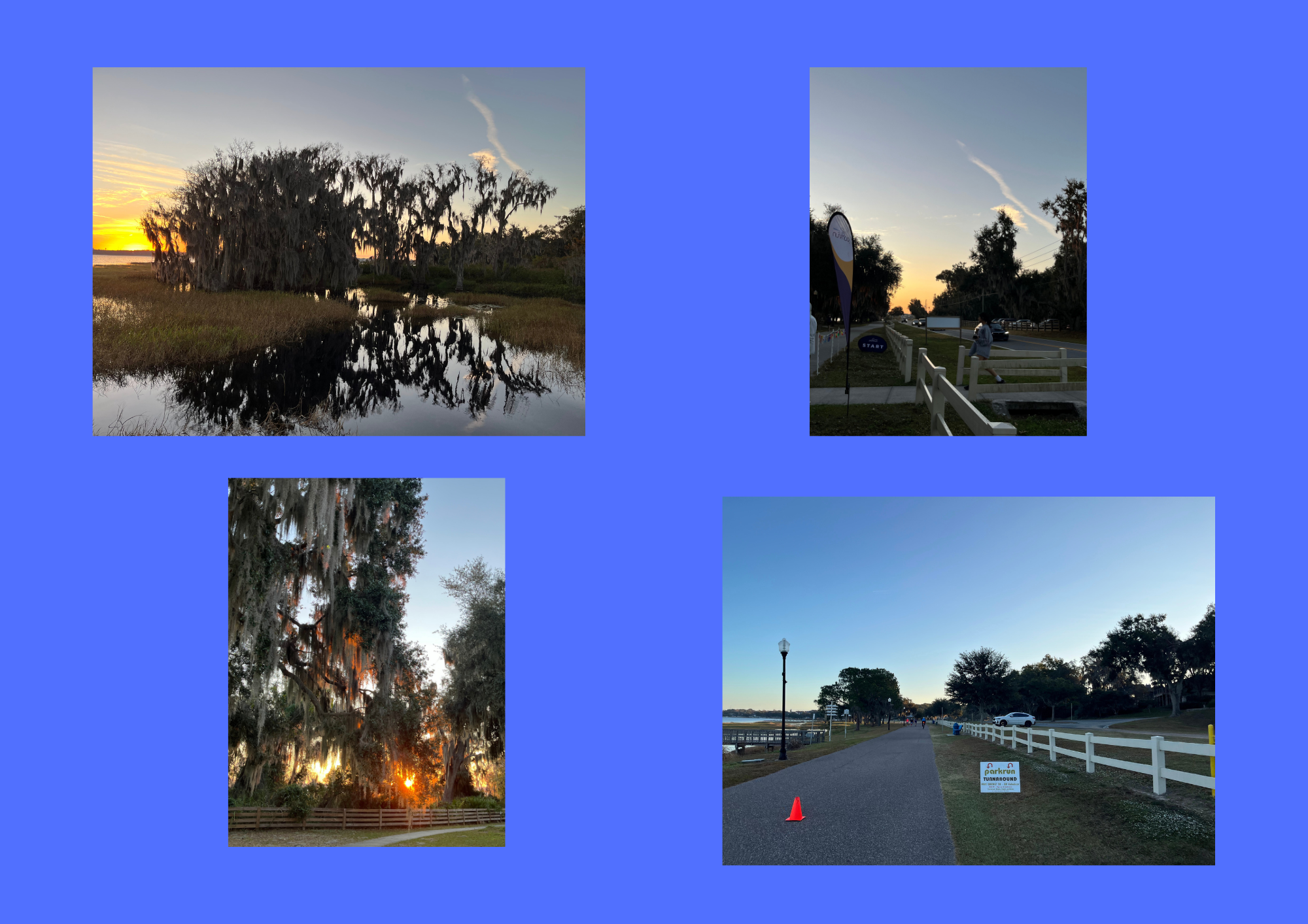 The sunrise was around 7:20 so as I got to the lake I was treated to the sun coming up- the sky was so orange just before although it wasn’t captured that well in the photos. I was wondering if I’d need a jacket at first (Florida was having a cold front just before we arrived and on NYD there was a thin frost on the car first thing, although it would warm up once the sun was out), but I was fine in t-shirt and shorts even before I started running. It was funny seeing the locals wrapped up in thick joggers and hoodies (with hoods up!) when I was just there in minimal layers!