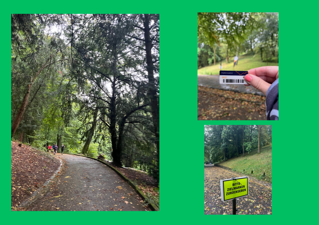 There were only 43 people taking part, and for long sections of it I was on my own as the main pack had headed off up the first hill a bit quicker than me. My legs were quite tired which was no surprise as we had done over 30,000 steps the day before, including the spiral staircase of the Dom (yes the Dom gave me DOMS), and that combined with the tricky route meant there was no chance of me speeding up and catching up with others. The course was very well marked though, with chalk arrows on the floor, cones marking the way and blocking off paths that were not part of the route, and the regular parkrun yellow arrow signs.