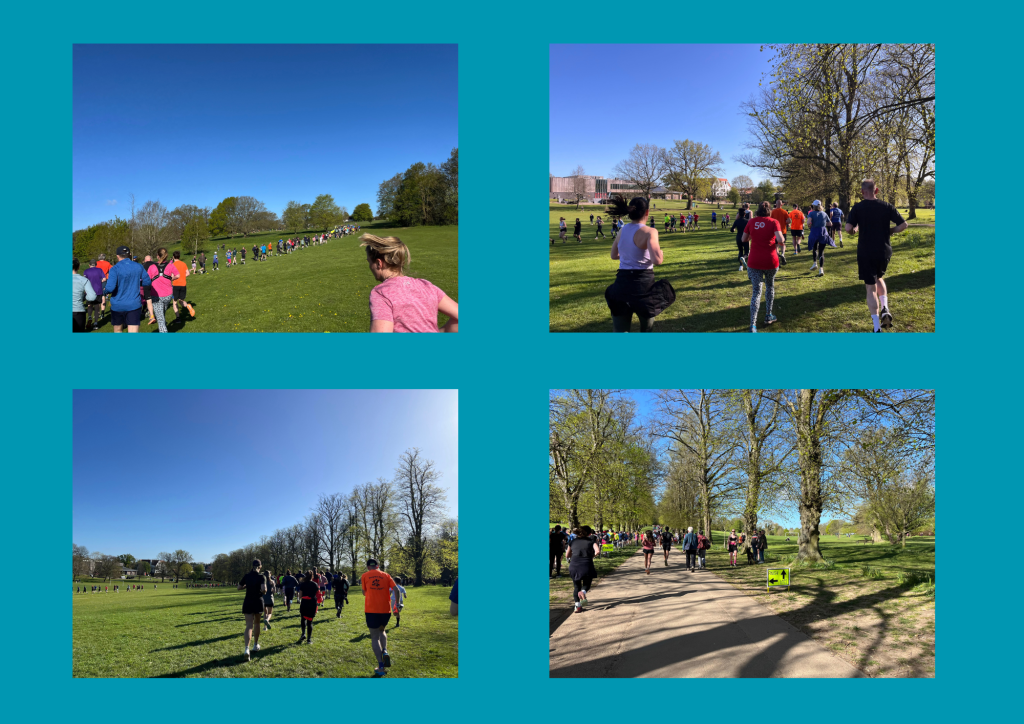Views from the parkrun- so many colourful people up ahead!