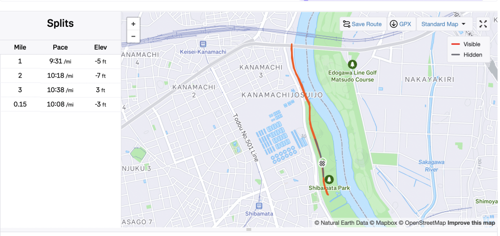 It’s only a few stops, but at about the second stop, a guy got off the train and then collapsed onto the platform. The conductor got off the train to help and within minutes a medic on a bike arrived, someone got them a wheelchair and whisked him away, but the train of course had to wait at the platform for a while. This meant that the train got in around 7:30 (parkruns in Japan start at 8) and the parkrun was a good 15 minute walk from the station.